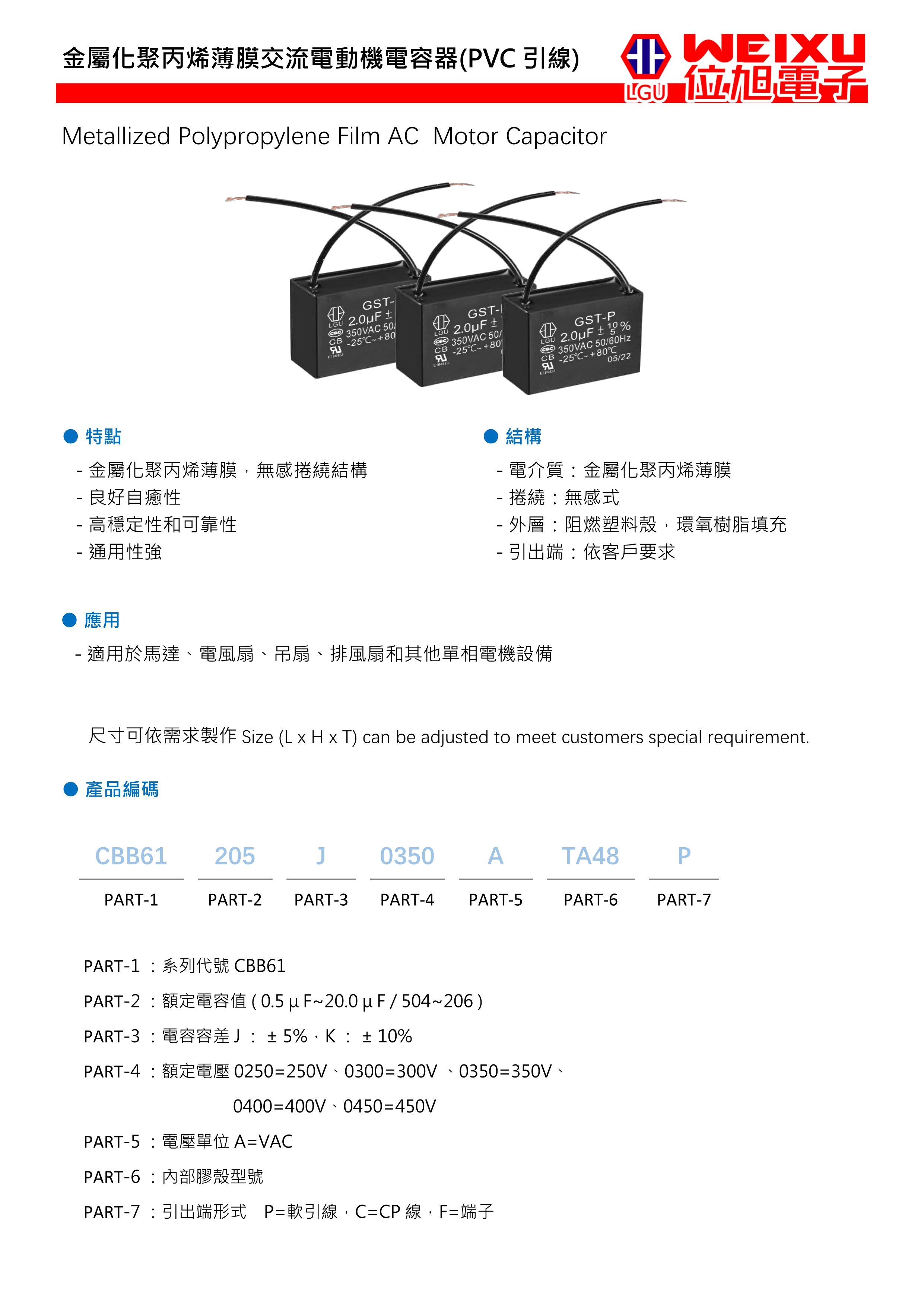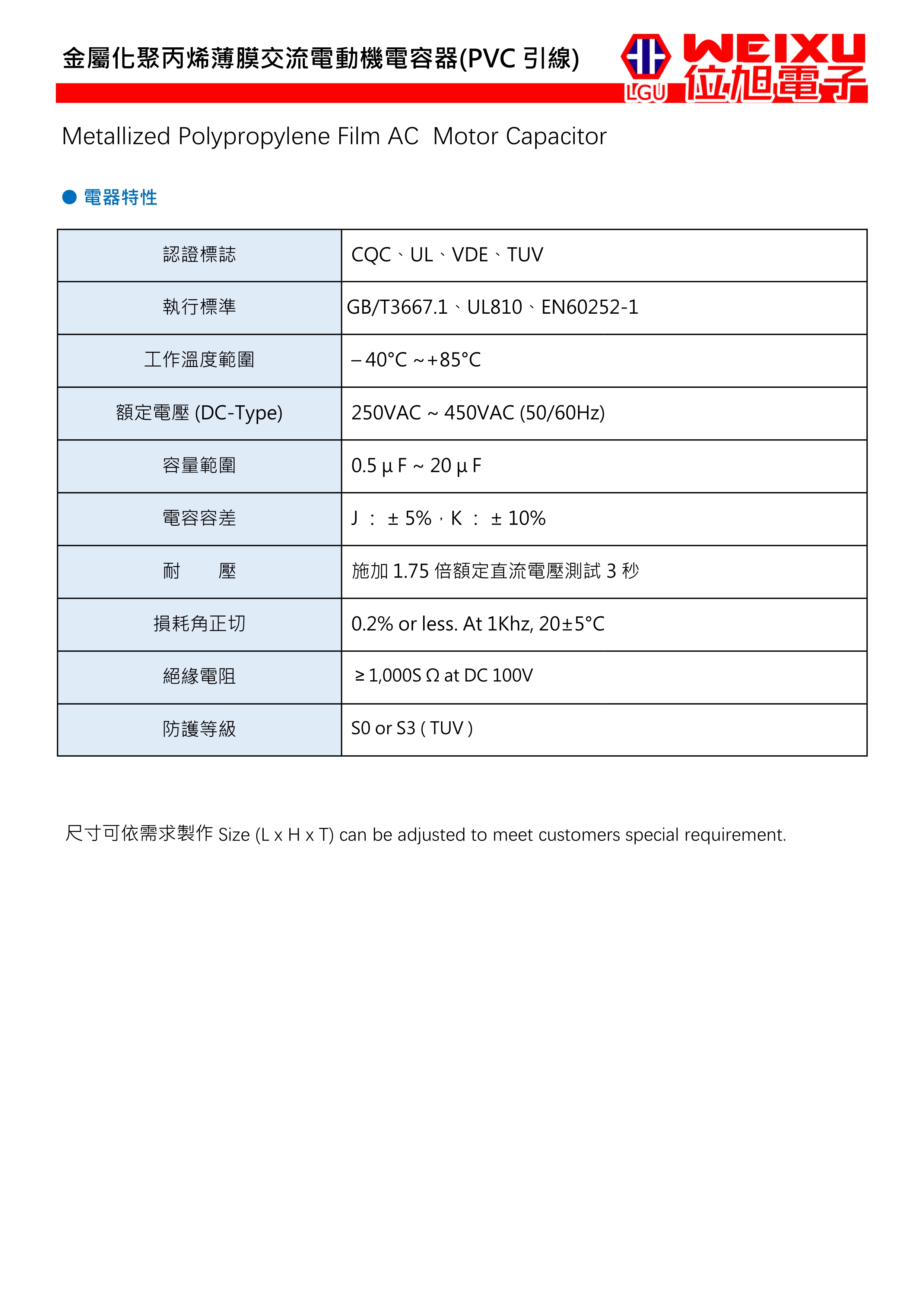 容量范围(uF):1.0~14 额定电压(Vac):400V 额定温度:-25℃~85℃
